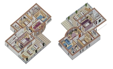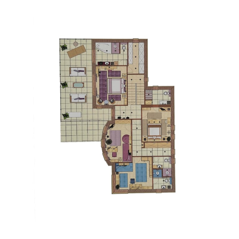 Upper Level: The private night quarters boast a luxurious master suite, complete with a lavish en-suite bathroom. Additional bedrooms, each with their own private bathrooms, ensure comfort and privacy for family or guests. Step out onto the expansive terrace, where panoramic views create an unforgettable backdrop for relaxation or entertaining.